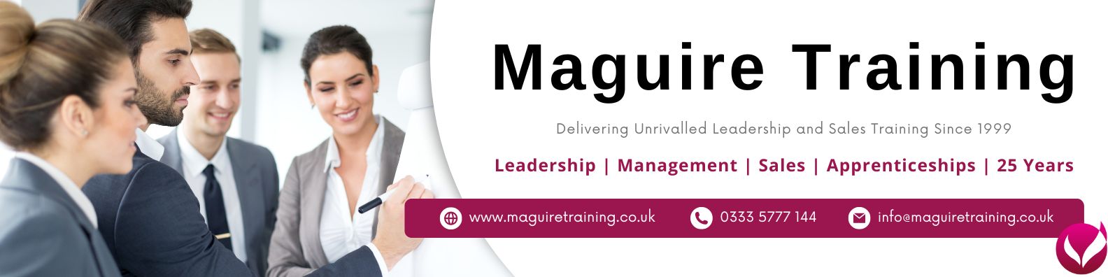 Since 1999, Maguire Training has been one of the UK's leading training companies specialising in the design and delivery of world-class CPD-certified management, leadership, sales, and personal development training. Our clients are diverse, ranging from some of the UK’s best-known companies responsible for some of our most loved brands to small and medium-sized companies excelling in their sectors.